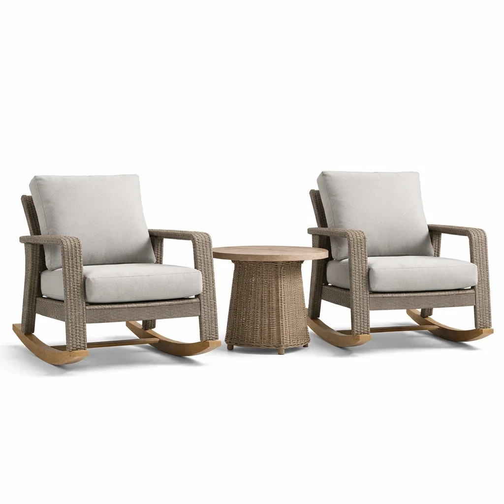 Ensemble de détente en rotin synthétique avec fauteuils à bascule et table basse