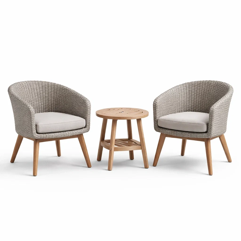 Ensemble de détente en résine tressée avec fauteuils et table en acacia