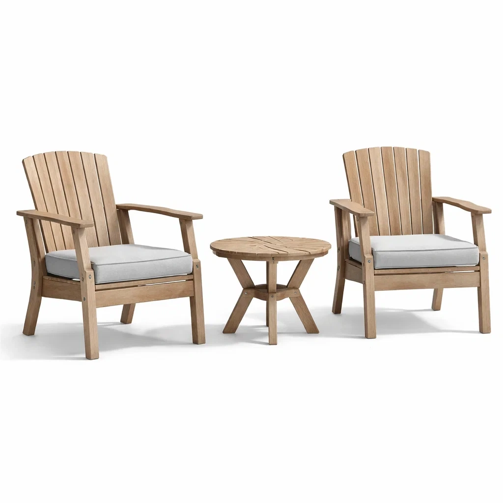 Ensemble de détente en bois gris avec coussins blancs