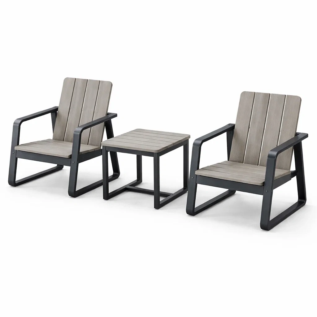 Ensemble de détente extérieur en aluminium et polywood gris