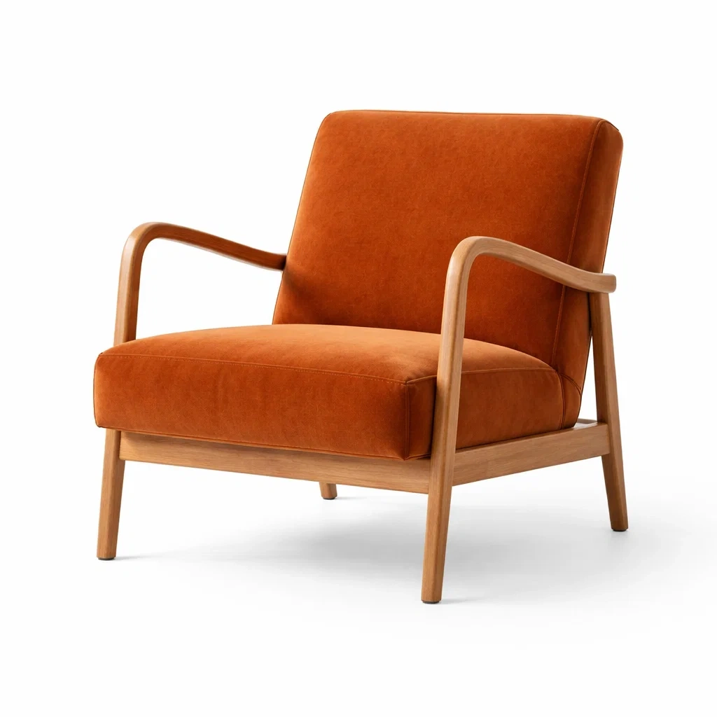 Fauteuil en bois et tissu velours orange